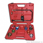 Изготовлен из прочного и износостойкого пластика (Nylon 66). Для тестирования охладительной системы на предмет утечек. В комплект входит ручной насос и поверочные крышки. Общее количество предметов: (в кейсе) 19 предметов.