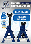 Подставка для автомобиля реечного типа г/п 3,0т. Указанная нагрузка на комплект из 2 шт. Четыре опоры на металлических пластинах. Предназначена для фиксации автомобиля после подъема. Область применения в легковых автосервисах и шиномонтажах. Регулируемая высота 275-415мм. Цена указана за 2шт.