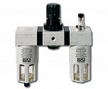 G-FRL-200 1/2” Модульная группа для подключения одного или нескольких пневмоинструментов – 2000 л/мин. Снижает давление между компрессором и пневмоинструментом. Регулятор давления воздуха с лубрикатором, влагоотделителем и манометром вход/выход - 1/2”. Давление компрессора 8-10Бар.