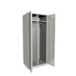 Шкаф металлический сборный двухсекционный. Шкаф окрашен порошковой краской светло-серого цвета RAL 7035. Размеры: 1850x800x500 мм.