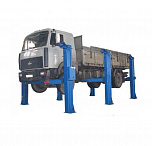 г/п. 15 тонн. Четырехстоечный. Электромеханический. Для ремонта грузовых автомобилей отечественного и импортного производства и автобусов на любой ровной площадке. Привод червячный редуктор, с концевыми выключателями нажимного действия, ограничивающими ход каретки. Рабочие гайки повышенной прочности и износостойкости. Многоуровневая система безопасности. По отдельному заказу комплектуется установочными рамами. Поставляется в 2 вариантах Стандарт (в помещение) и ТЗ (Для эксплуатации на улице).