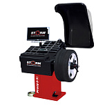 Автомат. Оснащение: Цветной монитор 21,5’’ для графического отображения всех процессов и настроек. Микрокомпьютер с мощным процессором. Высокая точность измерений. ОС Android. Качественная 3D-графика. Возможность обновления ПО. Эргономика и удобство использования. Измерение ширины колеса производится кронциркулем. Электромеханический тормоз. Автоматический доворот колеса до места установки груза. Лазерным линейный указатель. Возможность установки груза линейкой. Диаметр обода балансируемого колеса 12-28". Вал диаметром 40 мм.
