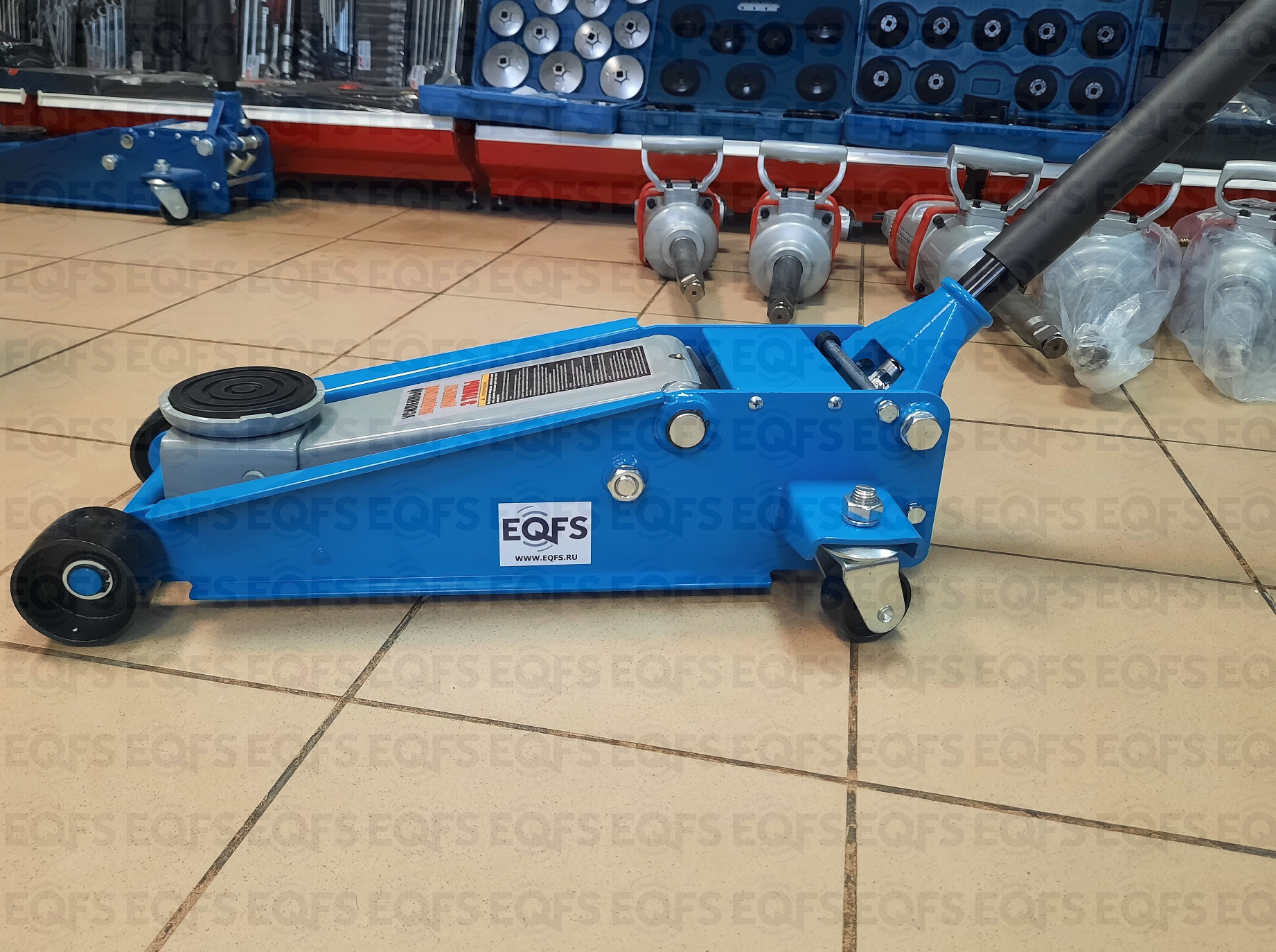 Для профессионалов. Подкатной. Грузоподъемность 3 тонны с усиленной конструкцией. Двухплунжерный механизм быстрого подъема. Домкрат имеет повышенную износостойкость. С тавотницей и резиновой накладкой на чашку домкрата в комплекте. Высота подъема 130-460 мм. Вес: 31,5 кг. Цвет темно-синий.