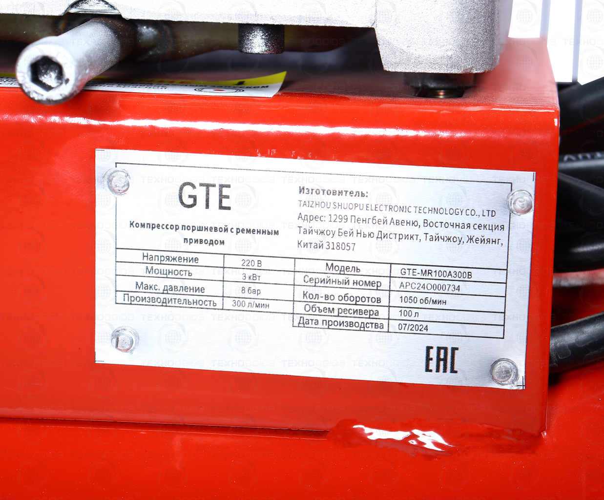 GTE-MR100A300B Компрессор поршневой с ременным приводом одноступенчатый 220В