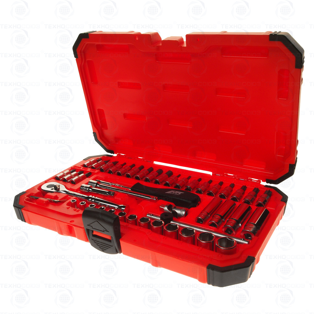 Набор 47 предметов включает: головки 1/4", головки с насадкой SL 1/4", головки с насадкой PH 1/4", головка с насадкой HEX 1/4", ключи шестигранные, трещотка 1/4", удлинители, вороток с плавающей головкой 1/4", карданный переходник 1/4", вороток 1/4".
