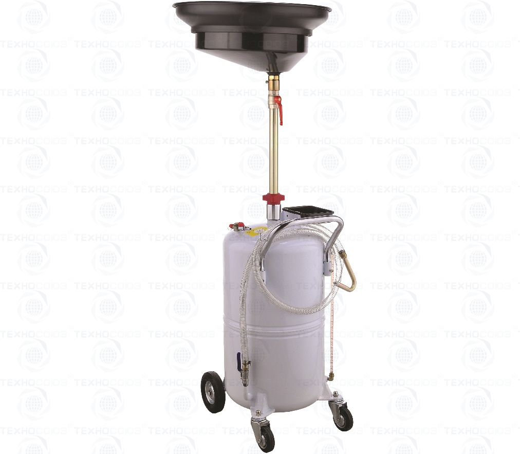 Емкость для слива масла (маслосборник), емкость бака 80 л, с подъемной ванной емкостью 15 л, длина шланга 2м, максимальная высота 1850 мм, давление слива масла 0,5 бар, вес 25кг.