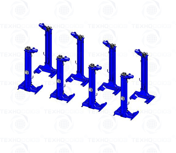 г/п 32 тонн. Восьмистоечный. Подкатной. Электромеханический. Привод червячный редуктор, с концевыми выключателями нажимного действия, ограничивающими ход каретки. Комплектуется четырьмя страховочными подставками. Подхват за колеса. Поднимает за колеса трехосные автомобили и автобусы-сцепки с диаметром колесного диска от 20-22 дюймов. Поставляется в 2 вариантах Стандарт (в помещение) и ТЗ (Для эксплуатации на улице). Данный подъемник имеет уникальную возможность трансформации в два отдельных четырехстоечных подъемника, каждый грузоподъемностью 16 тонн.