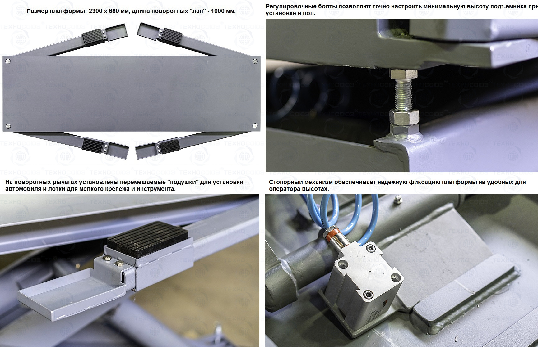 Регулировочные болты позволяют точно настроить минимальную высоту подъемника при установке в пол.