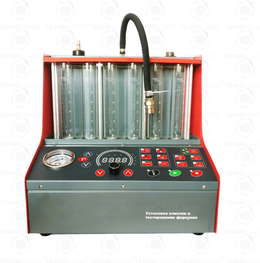 Установка LR-602  - это стенд для проверки и промывки 6 форсунок ультразвуком, как электромагнитных так и механических, очистки топливных систем автомобиля, а также впускных клапанов и камер сгорания при помощи сольвента без снятия форсунок.