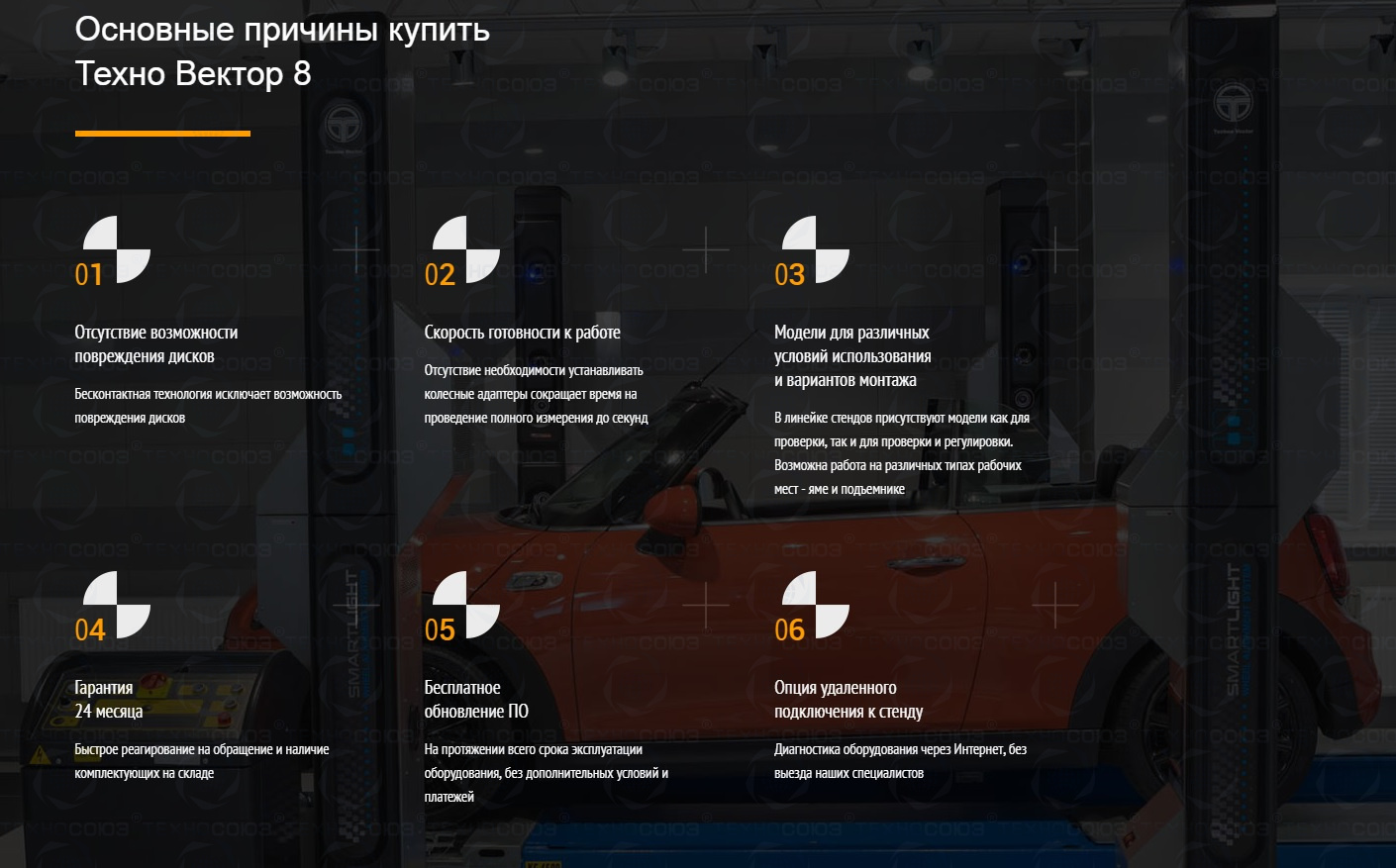 T8102 VELOX бесконтактный стенд сход развал Техно Вектор