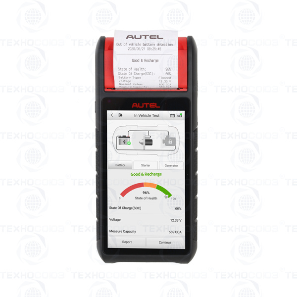 MaxiBAS BT608 — автономный профессиональный тестер для диагностики АКБ и систем пуска ДВС. Есть функции диагностики электронных систем 53 марок автомобилей, встроенный термопринтер.
