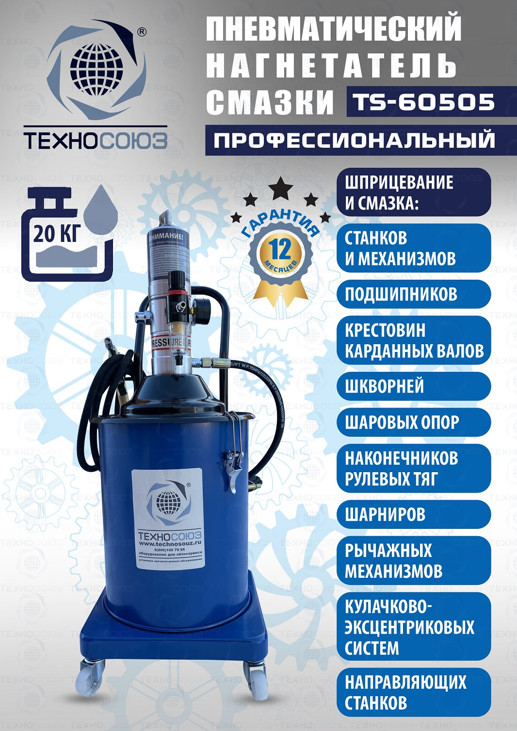 TS-60505 Нагнетатель смазки пневматический 20 л