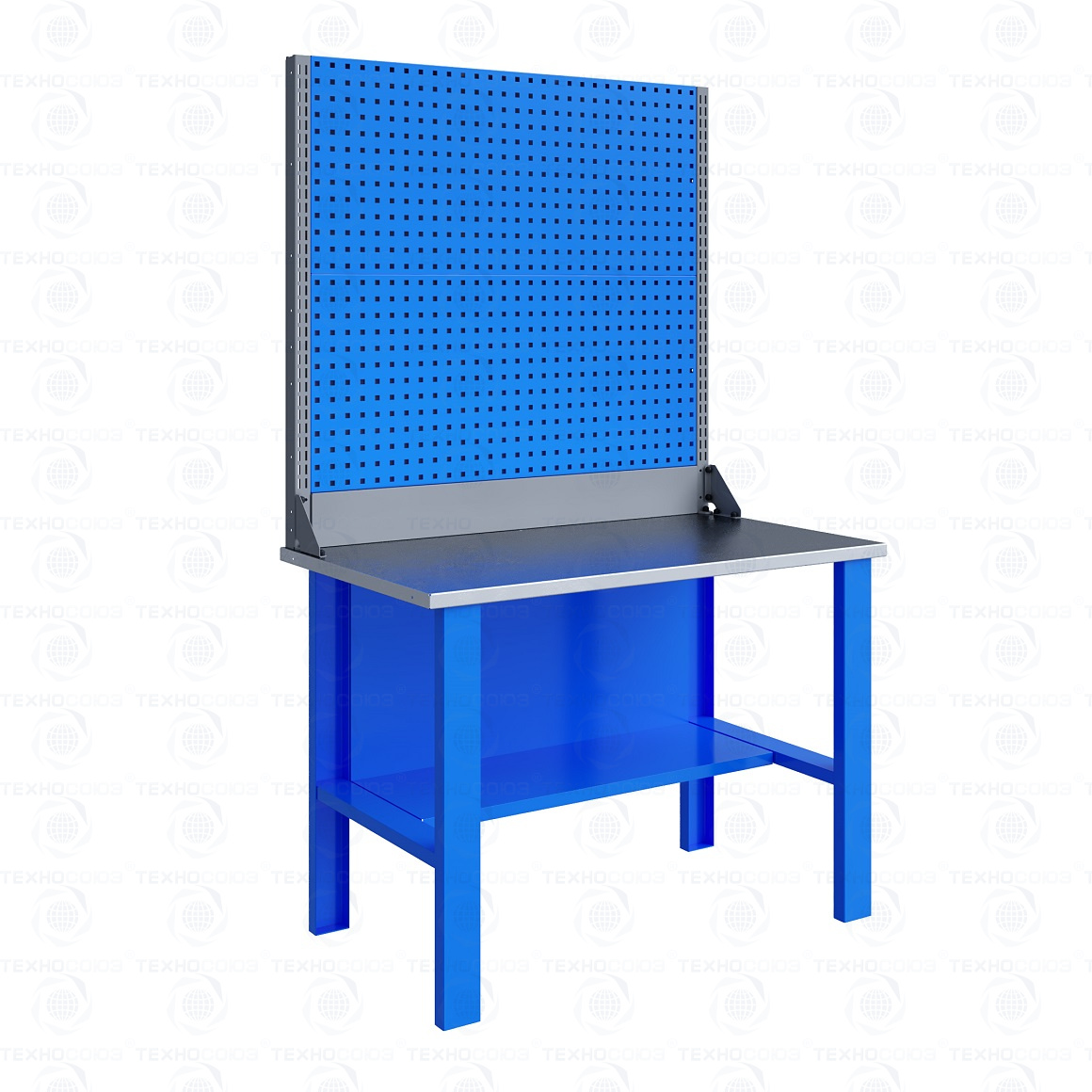 Верстак серии Technic  121.11.3-2 состоит из столешницы шириной 1196 мм, двух опор, полки-стенки, двойного экрана с кронштейнами.Предназначен для выполнения сборочных, ремонтных, слесарных, монтажных и других видов работ на производстве, в сервисных центрах, мастерских, гаражах, а также для обучения технологии в учебных заведениях. Верстак представляет собой сборно-разборную конструкцию. Опорные элементы выполнены сварными из холоднокатаной стали. Верстак комплектуется полкой-стенкой, расположенной под столешницей для удобного размещения габаритного инструмента и оснастки.